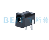 DC插座是一種與電腦顯示器專用電源相配的插座,它是由橫向插口、縱向插口、絕緣基座、叉型接觸彈片、定向鍵槽組成,兩只叉型接觸彈片定位在基座中心部位,成縱橫向排列互不相連。叉型接觸彈片一端為接線口,外露在基座圓柱體頂面,供連接輸入電源軟線或軟纜用,叉型接觸彈片另一端由基體互連的兩只彈性臂組成,設置在DC插頭插入方向絕緣基座插孔內,供給電腦顯示器之用,使之正常工作。