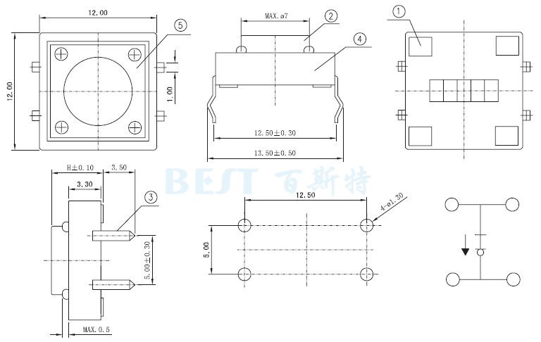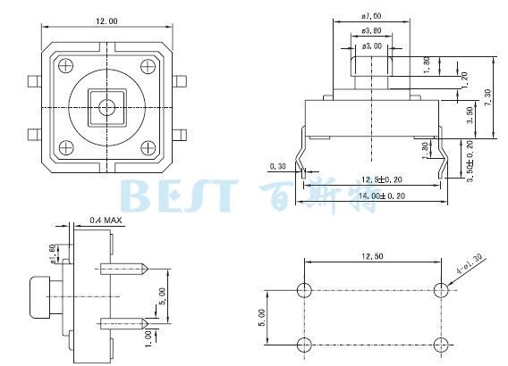 別稱:12x12輕觸開關(guān),四腳輕觸開關(guān)12x12